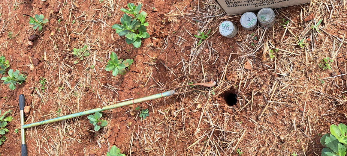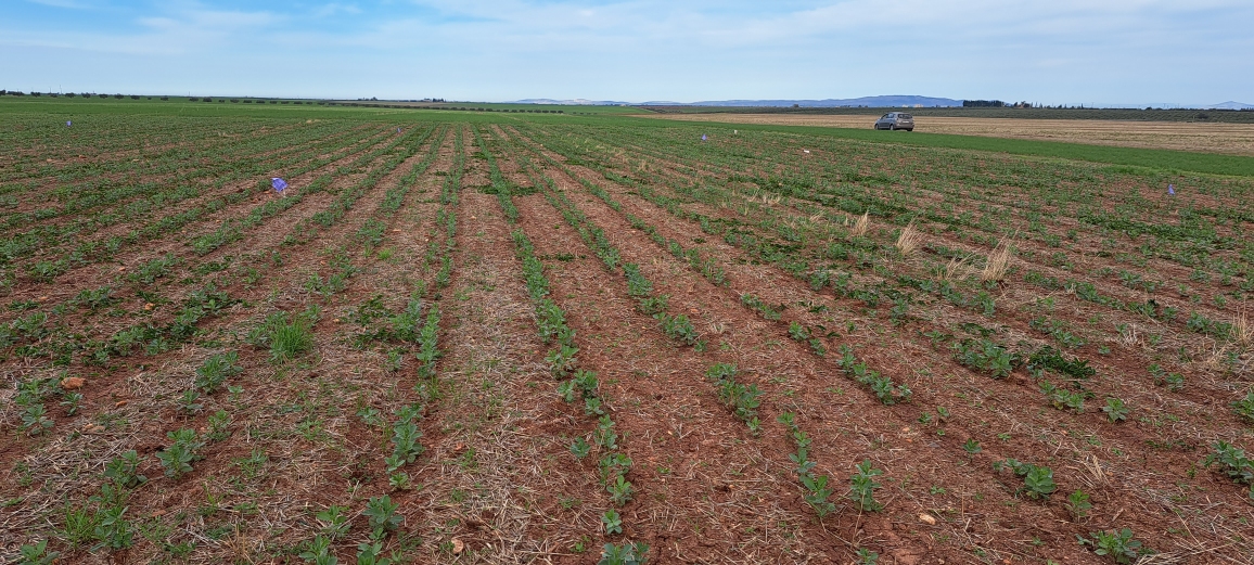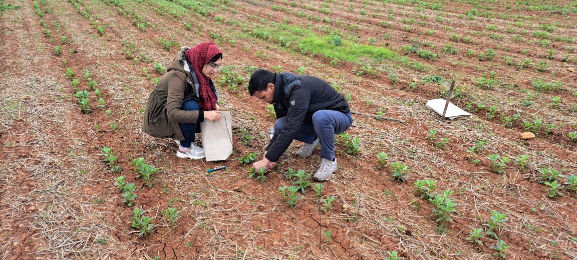 Prélèvement d’échantillons des cultures (féverole, pois chiche et blé dur), des adventices et de l’humidité du sol au sein de l’essai « Labour stratégique en agriculture de conservation » dans la plateforme du projet Conserveterra située dans la ferme West Maroc à Meknès.