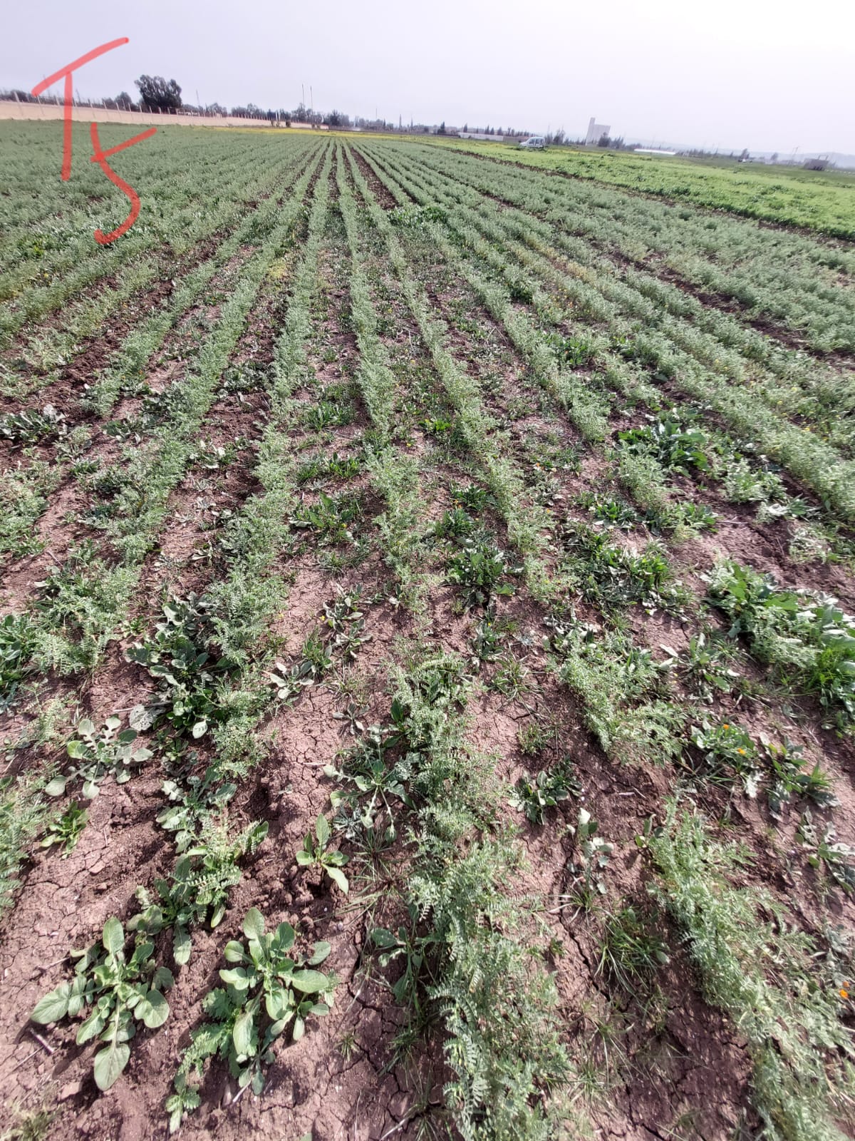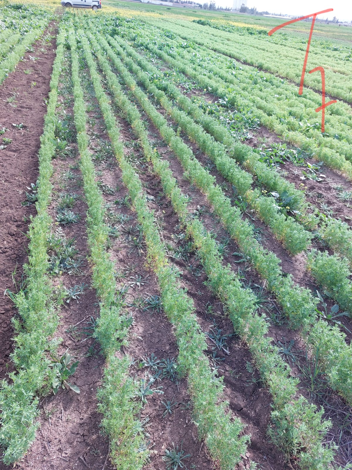 Vues des essais au champ d’évaluation de diverses stratégies de gestion intégrée des adventices des légumineuses alimentaires (pois chiche et lentille) en agriculture de conservation en utilisant des moyens mécaniques, manuels, chimiques et leurs combinaisons.