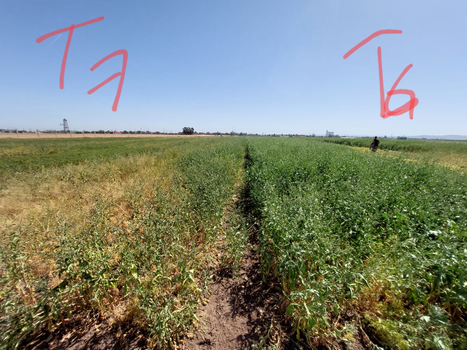 Vues des essais d’évaluation de diverses stratégies de contrôle des adventices des légumineuses alimentaires (pois chiche et lentille) en agriculture de conservation. Les essais sont installés dans la station expérimentale de Sidi El Aydi du Centre Régional de l’Institut National de la Recherche Agronomique à Settat (Maroc).