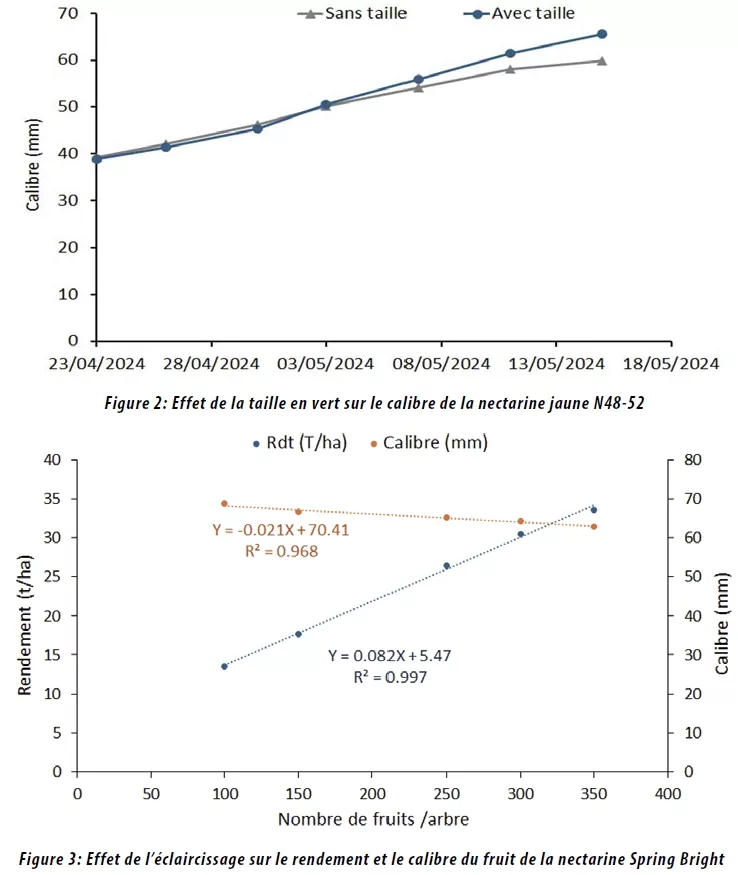 Figure 3: Effet de l’éclaircissage sur le rendement et le calibre du fruit de la nectarine Spring Bright