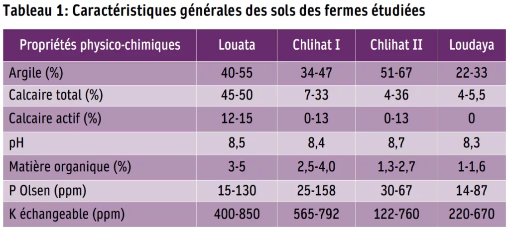 Tableau 1: Caractéristiques générales des sols des fermes étudiées