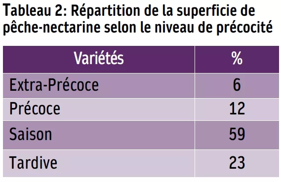 Tableau 2: Répartition de la superficie de pêche-nectarine selon le niveau de précocité