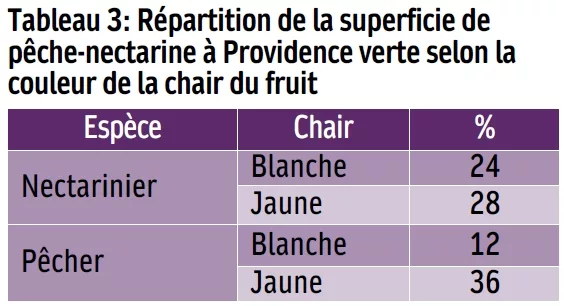 Tableau 3: Répartition de la superficie de pêche-nectarine à Providence verte selon la couleur de la chair du fruit